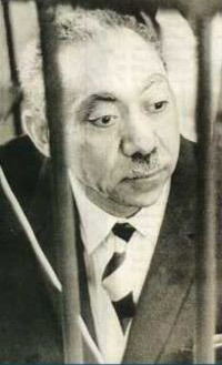 ثم تقدم نحو صاحبنا الذي لم نزل إلى جواره على جانبي المشنقة، وبعد أن أمر الضابط بإزالة الرباط عن عينيه، ورفع الحبل عن عنقه، جعل يكلمه بصوت مرتعش :