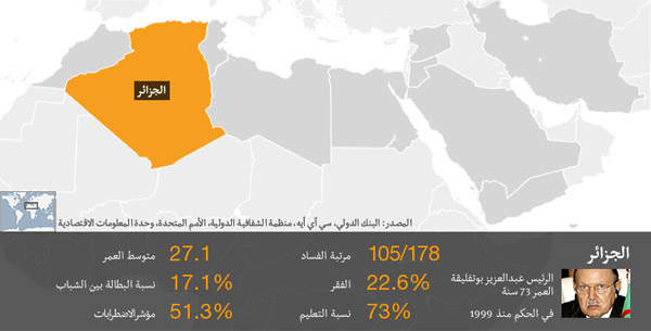 تشهد الجزائر مظاهرات متفرقة منذ أوائل يناير الماضي يطالب فيها المحتجون باقالة الرئيس عبد العزيز بوتفليقة.