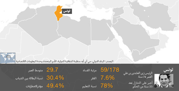 استمرت الاحتجاجات في تونس على الرغم من تنحي الرئيس زين العابدين بن علي في يناير الماضي، للمطالبة بتحسين الأوضاع المعيشية وتثبيت الاستقرار في البلاد.