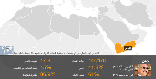 بعد أيام من الاحتجاجات التي نظمها المعارضون للحكم اليمني، أعلن الرئيس علي عبدالله صالح في الثاني من فبراير أنه لن يترشح لفترة رئاسية جديدة، بعد أن قضى ثلاثة عقود في السلطة.