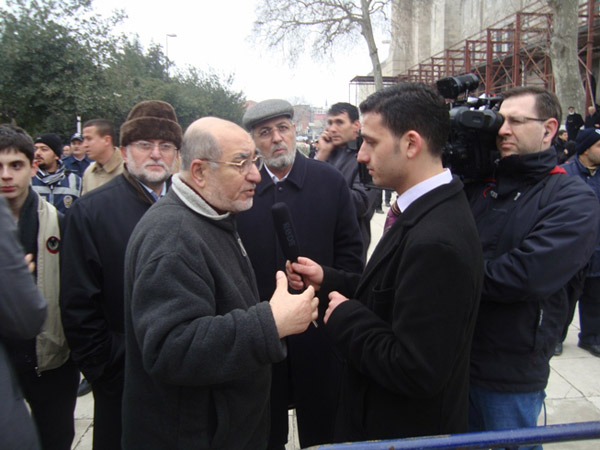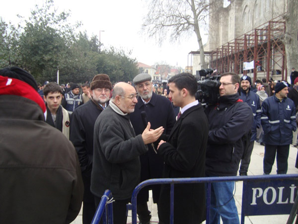 الأستاذ مصطفى الطحان مع بعض الشخصيات التي توافدت لحضور جنازة الراحل نجم الدين أربكان