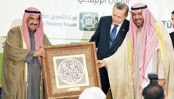 الشيخ ناصر المحمد يكرم أردوغان، والى جانبه الفهد