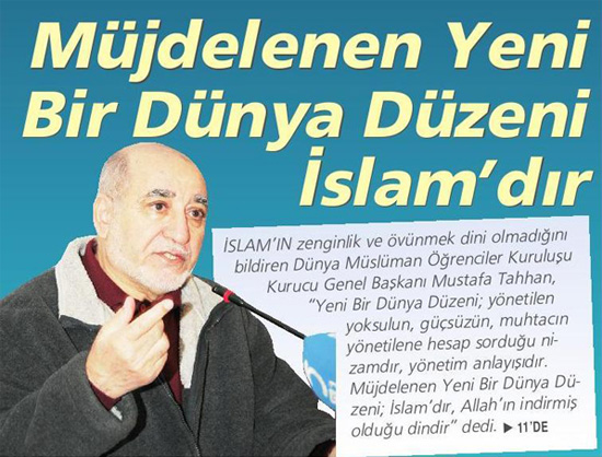 وبين الأستاذ مصطفى الطحان  المعنى الحقيقي للعالم الجديد الذى كان شعار الحركة الاسلامية التركية فى اواخر الستينيات، والذي غاب عن البعض بأنه ليس عالما مستوردا او جديدا إنما هو عالم ُشكلت معالمه منذ بعثة الرسول صلى الله عليه وسلم ، وان هذا العالم ليس ملوكية ولا تكبراً على الاخرين إنما هو الحب والعدل والوقوف مع المراة الفقيرة التى تحتاج المساعدة كما فعل الرسول صلى الله عليه وسلم ، وأن رسول الله صلى الله عليه وسلم والصحابة وعظماء الإسلام ومن مشى على دربهم قد مثلوا هذا العالم الجديد بعدلهم وأخلاقهم وعطائهم المتميز.